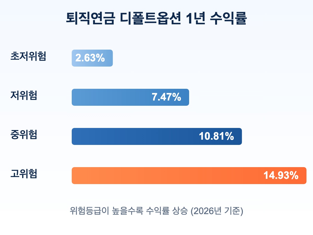 안정형에 85%가 몰려 있는 지금, 내 퇴직연금은 제대로 굴러가고 있을까요? 2026년 기준 디폴트옵션 위험등급별 수익률과 변경방법을 정리했습니다.
