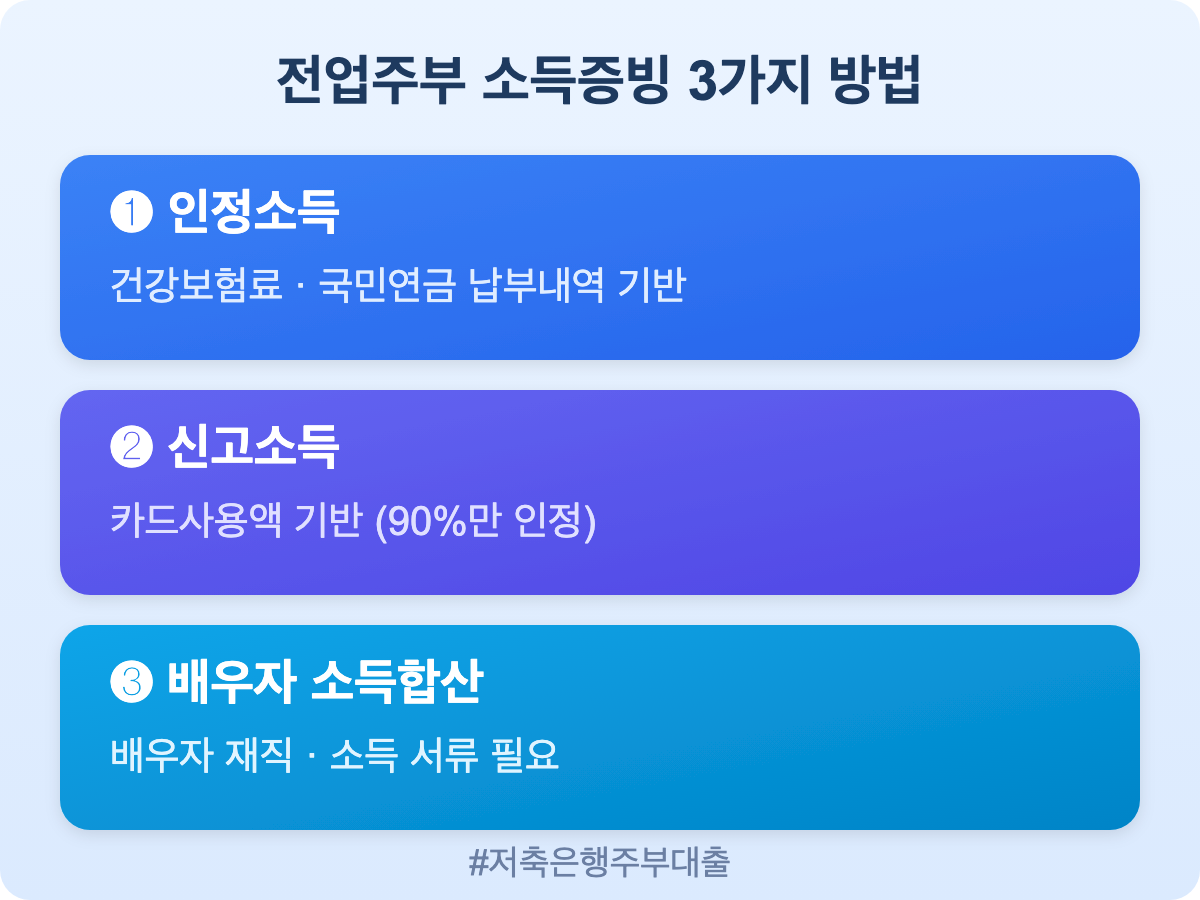 전업주부도 저축은행 대출이 가능합니다. 추정소득(건강보험료·카드사용액) 활용법부터 비대면 신청 절차, 금리·한도 비교까지 2026년 최신 정보를 실전 경험 기반으로 정리했습니다.