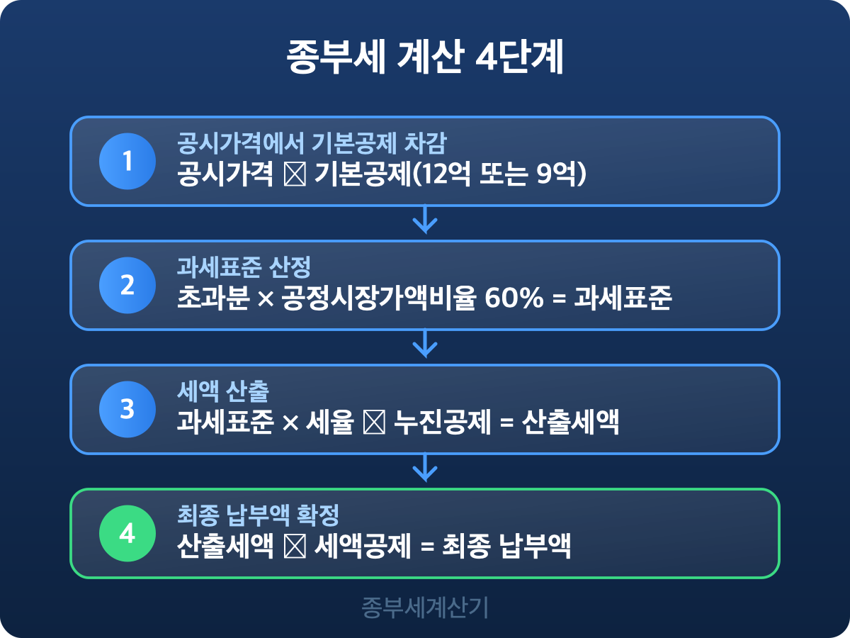 종부세 계산기를 활용해 2026년 종합부동산세를 직접 계산하는 방법을 단계별로 안내합니다. 세율 구간, 공정시장가액비율, 1주택자 절세 공제까지 한번에 정리했습니다.