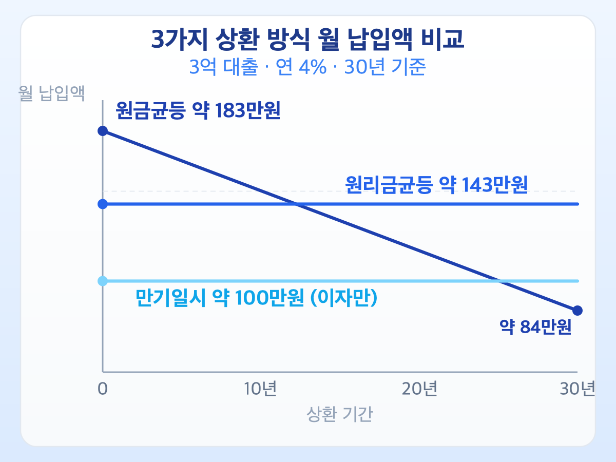 부동산 대출 계산기, 막상 열어보면 입력값이 많아 막막합니다. 3억 대출 기준으로 상환 방식별 월 납입액과 총이자 차이를 직접 계산해보고, 나에게 유리한 전략까지 정리했습니다.