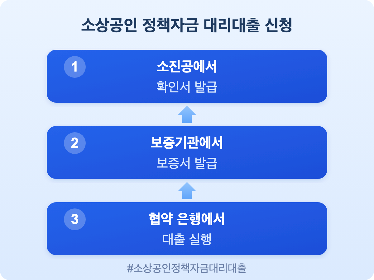 소상공인 정책자금 대리대출은 소진공 확인서를 발급받아 시중은행에서 대출을 실행하는 방식입니다. 2026년 1분기 기준 금리, 신청 절차, 직접대출과의 핵심 차이를 단계별로 정리했습니다.
