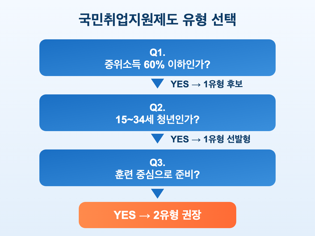국민취업지원제도는 크게 두 갈래입니다. 1유형은 현금(수당) 중심, 2유형은 서비스·훈련비 중심이라고 기억하면 쉽습니다.