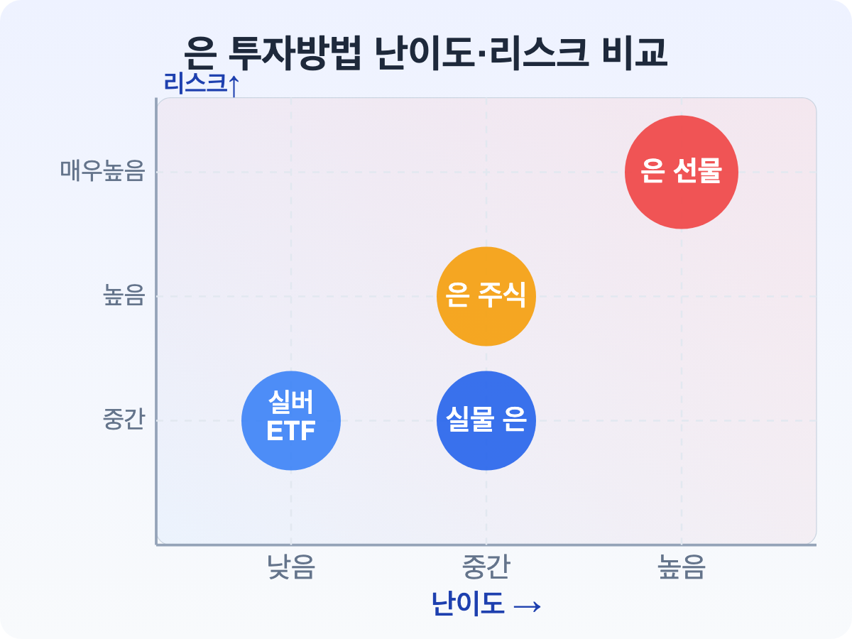 은 투자방법이 궁금한 초보자를 위해 실물 은, KODEX 은선물 ETF, SLV, 은 통장, 선물 거래까지 5가지 방식을 비교합니다. 수수료·세금 차이와 단계별 시작 절차를 실전 경험 기반으로 정리했습니다.
